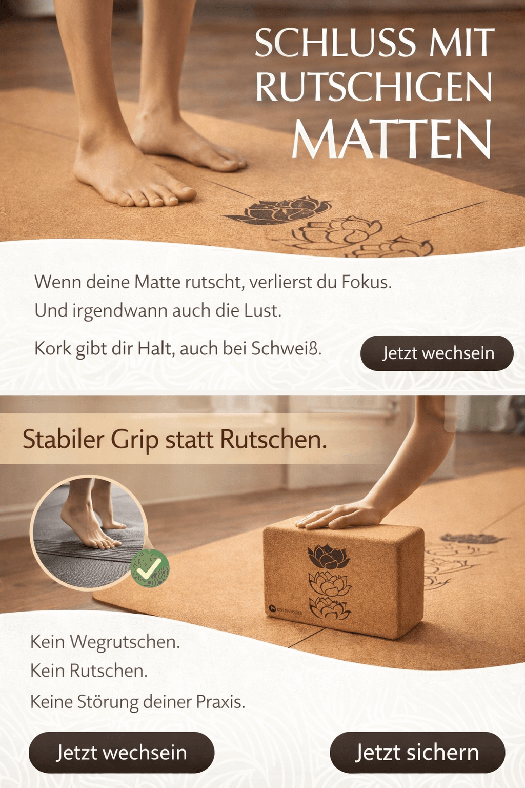 Unsere Yogamatte ist die perfekte Ergänzung zu Deinem neuen Kork Yogablock!